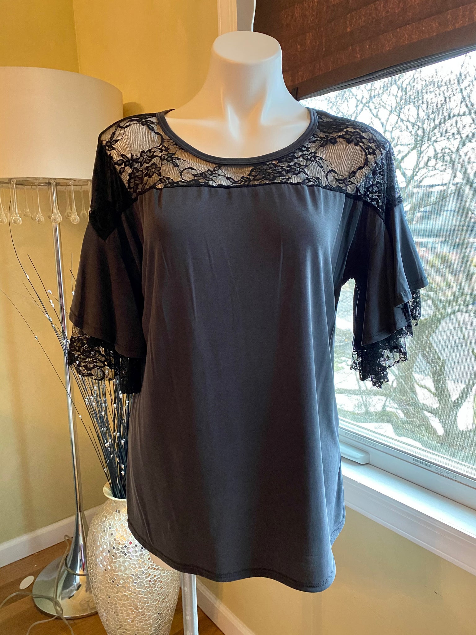 COLOR:  CHARCOAL GREY & BLACK LACE